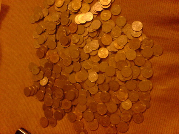 拿起我的豬撲滿把錢全部倒出來(裡面都是10跟50的)
